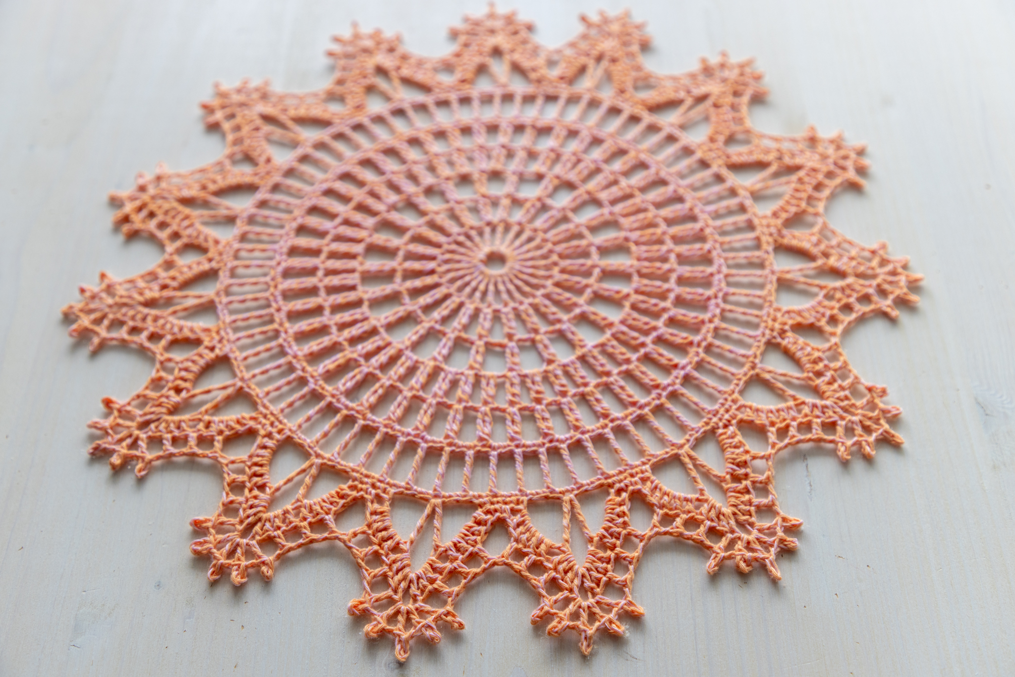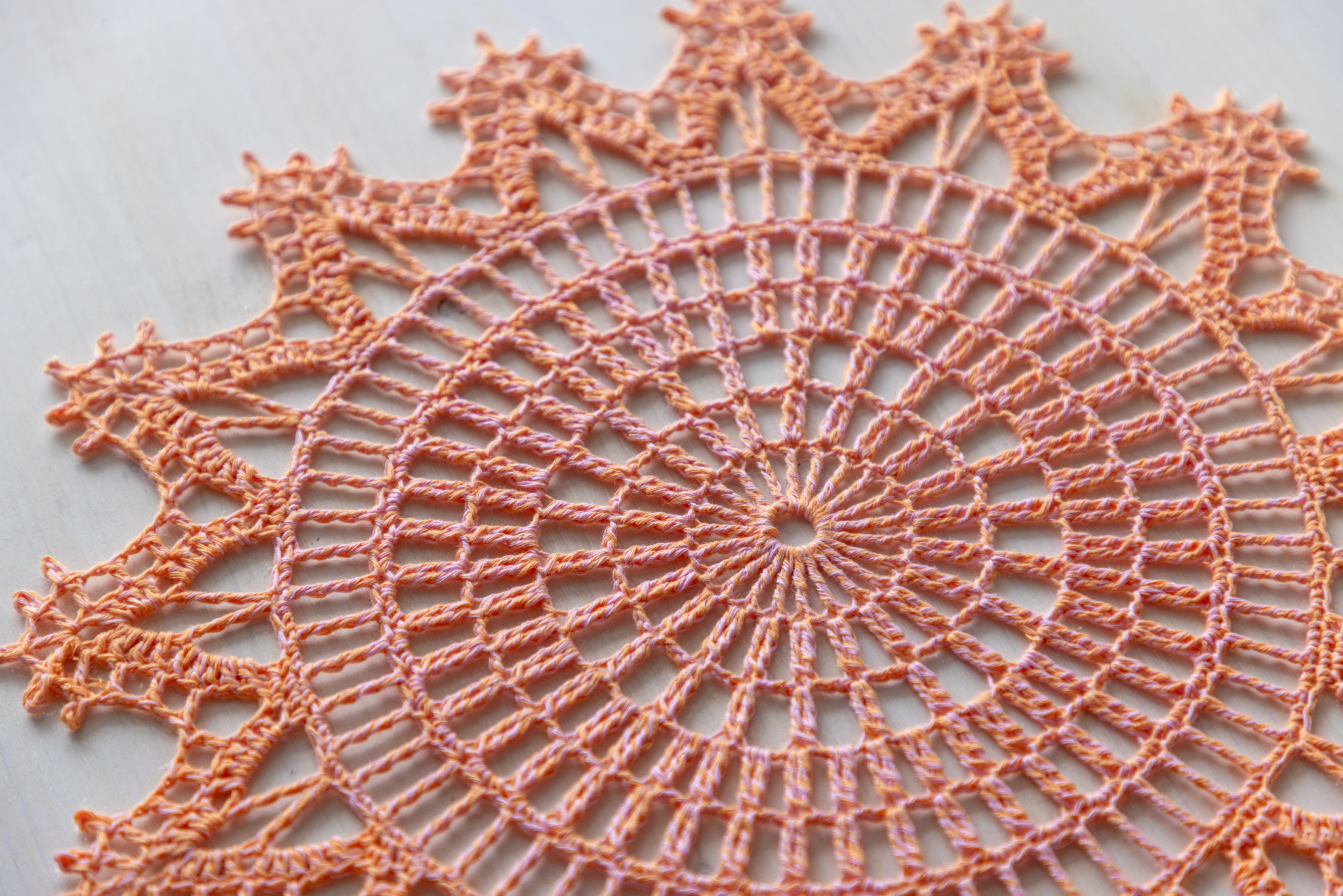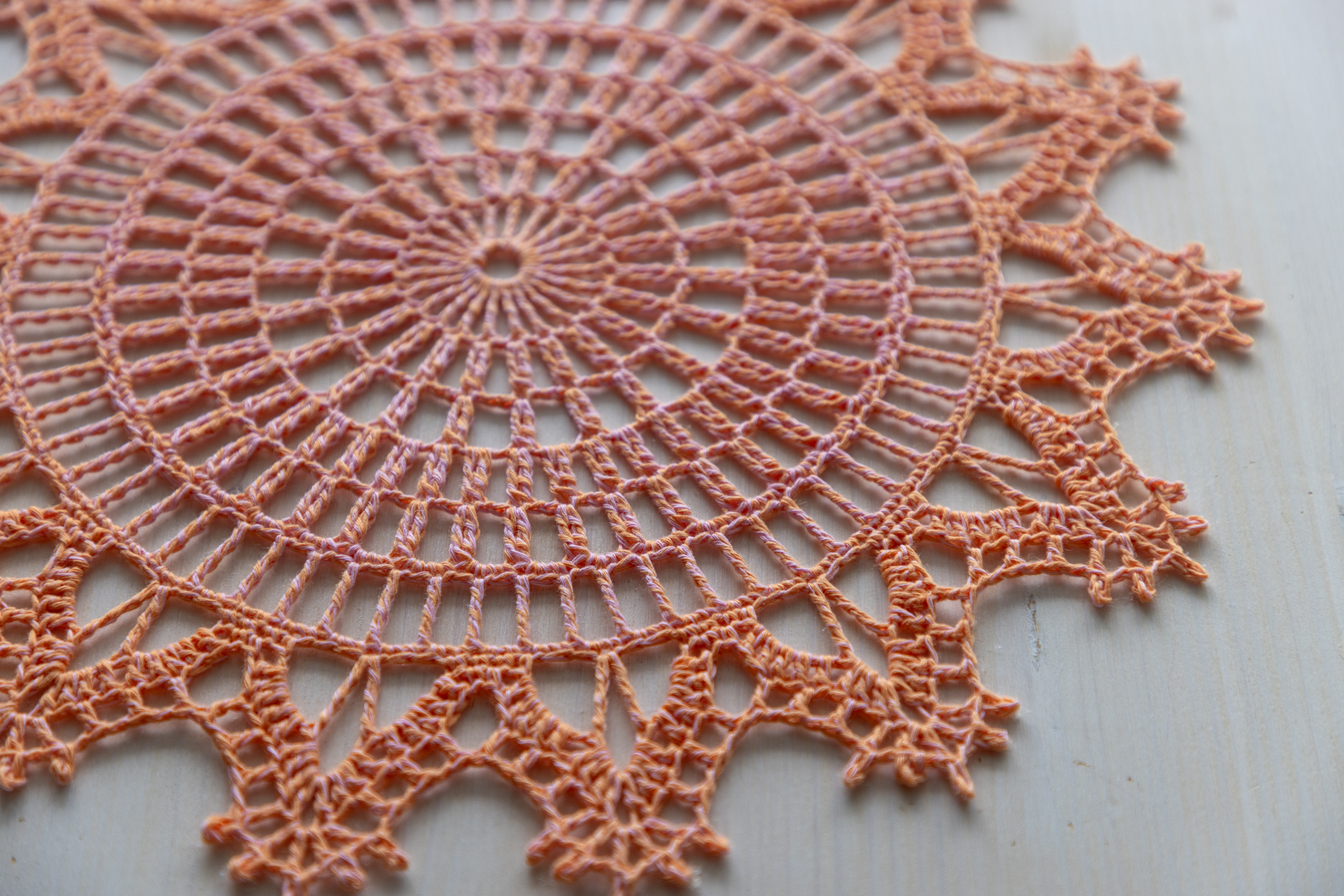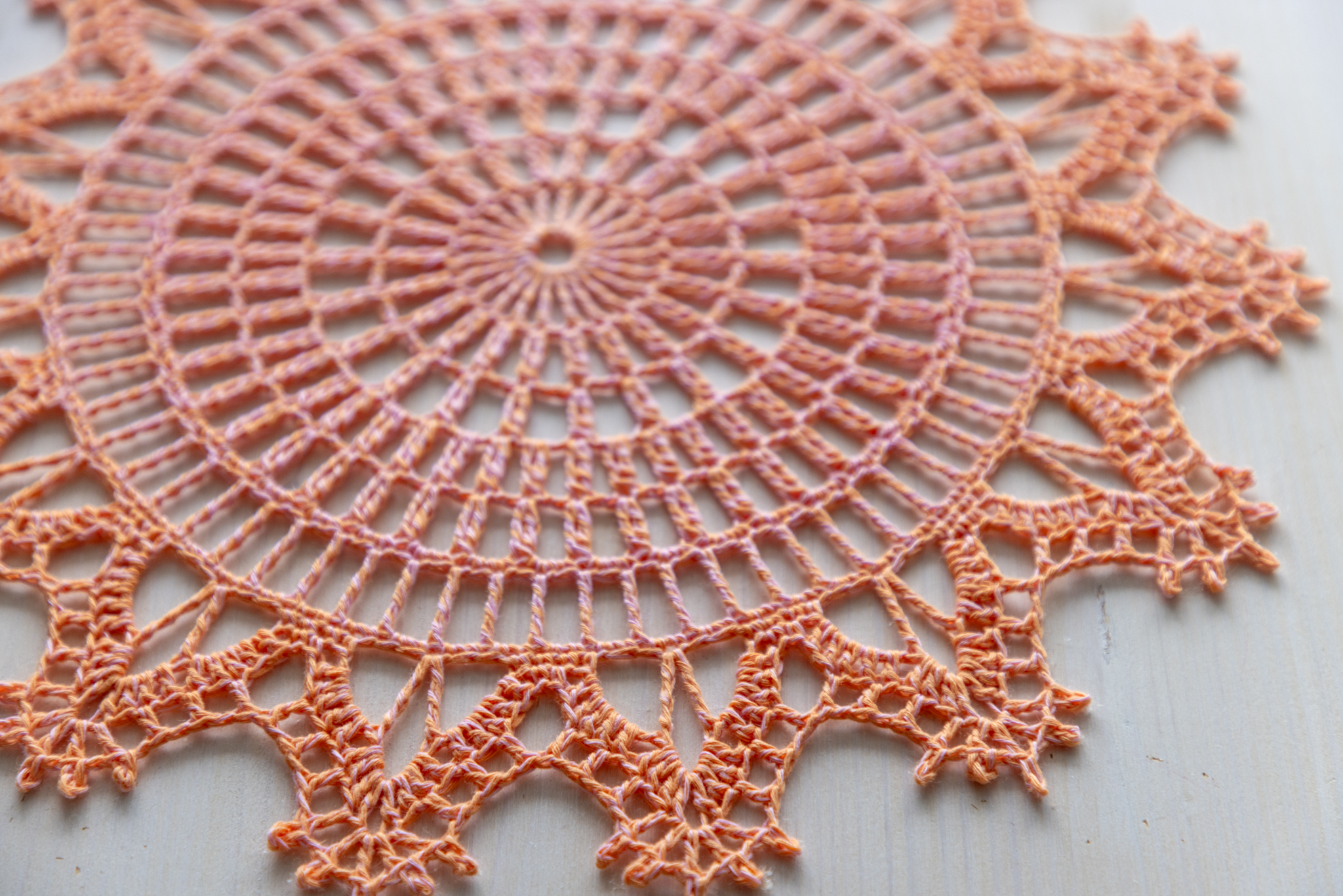 Orange and pink crochet doily, 36 cm