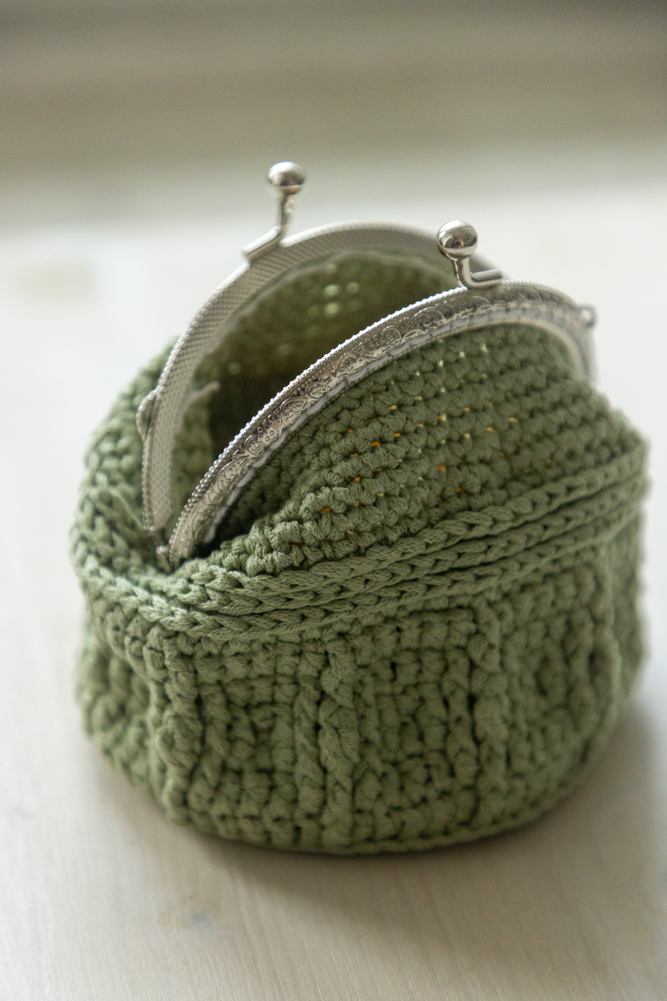 For that coin purse you will need 10 cm metal frame, 1 skein of Stuzkova prize and 2.75 mm crochet hook.