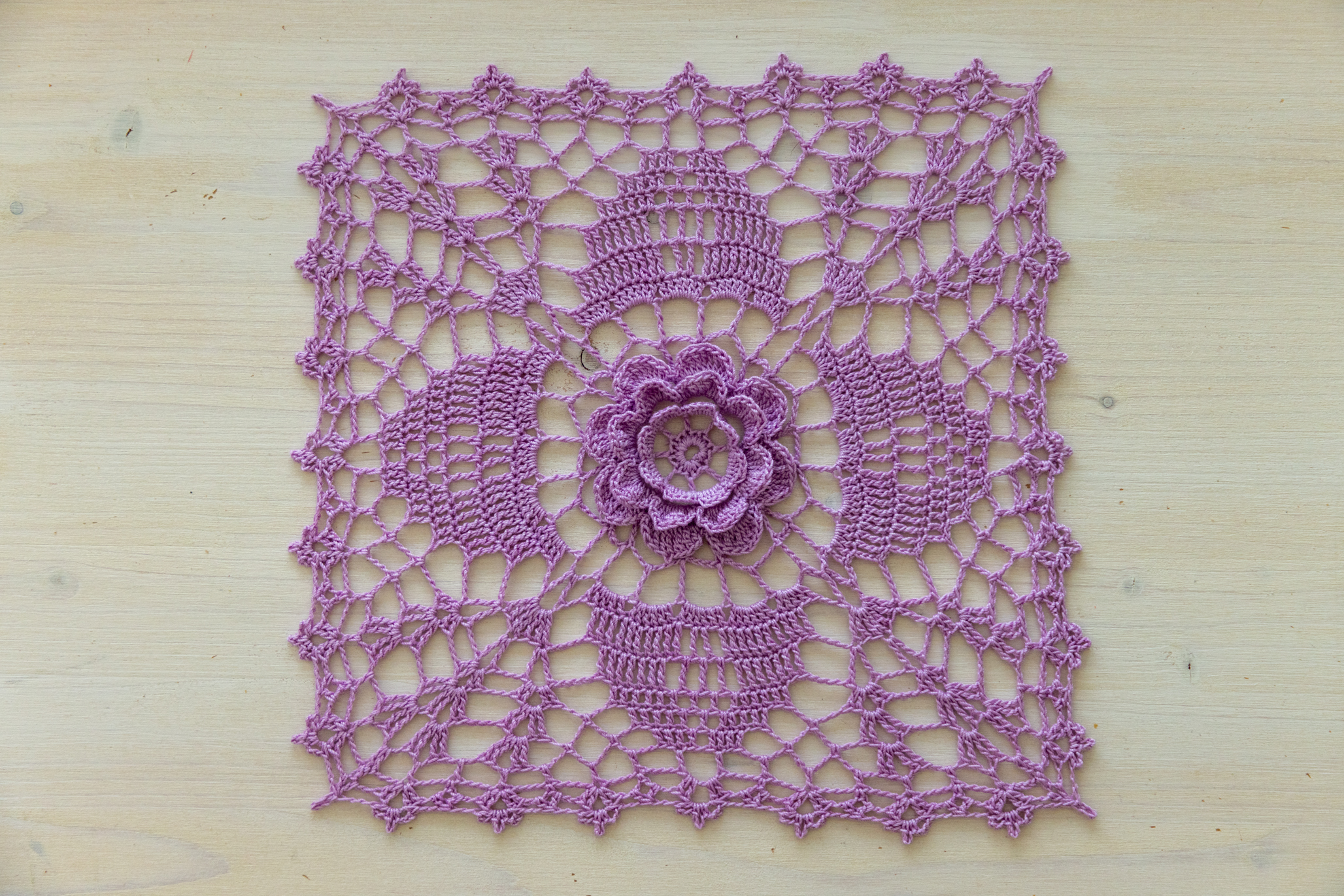 Purple crochet doily, 25 x 25 cm
